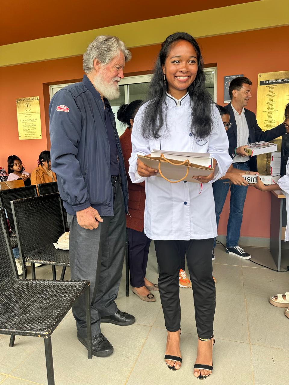 Merci au Pรจre Pedro ainsi qu’ร nos partenaires Olivier CUA #epsilonmadagascar et Lalasoa RAKOTONOMENJANAHARY #orangemadagascar pour leur prรฉsence et leurs mots devant les jeunes Chefs